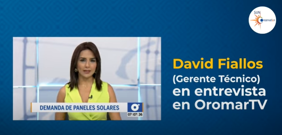 Durante entrevista en OromarTV, David Fiallos detalló como la energía solar es la solución a la crisis eléctrica de Ecuador. Resaltando el ahorro eléctrico y demás beneficios para las empresas. OromarTV